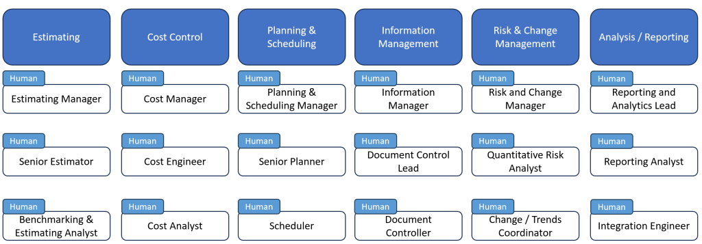 How will agentic capabilities impact project controls, which today is 100% human operated (with assistance from tools, of course)? See chart below for an illustration of project controls today: